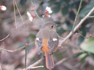 こちらは…昨日の黄連雀に続き、今日はジョウビタキの雌が姿を見せてくれました。