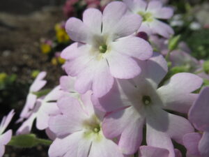 寺標前花壇のサクラソウ、春陽を浴びて生き生きと咲く。