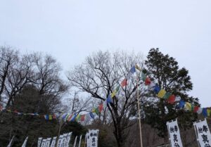 風にたなびく都度に、記されている経文が亡き人の御回向となるとされる五色幡。