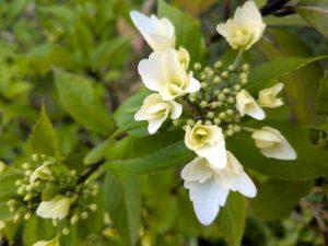 ヤマアジサイの花が開き始めました、こちらは白色から青へ変化をしていきます。